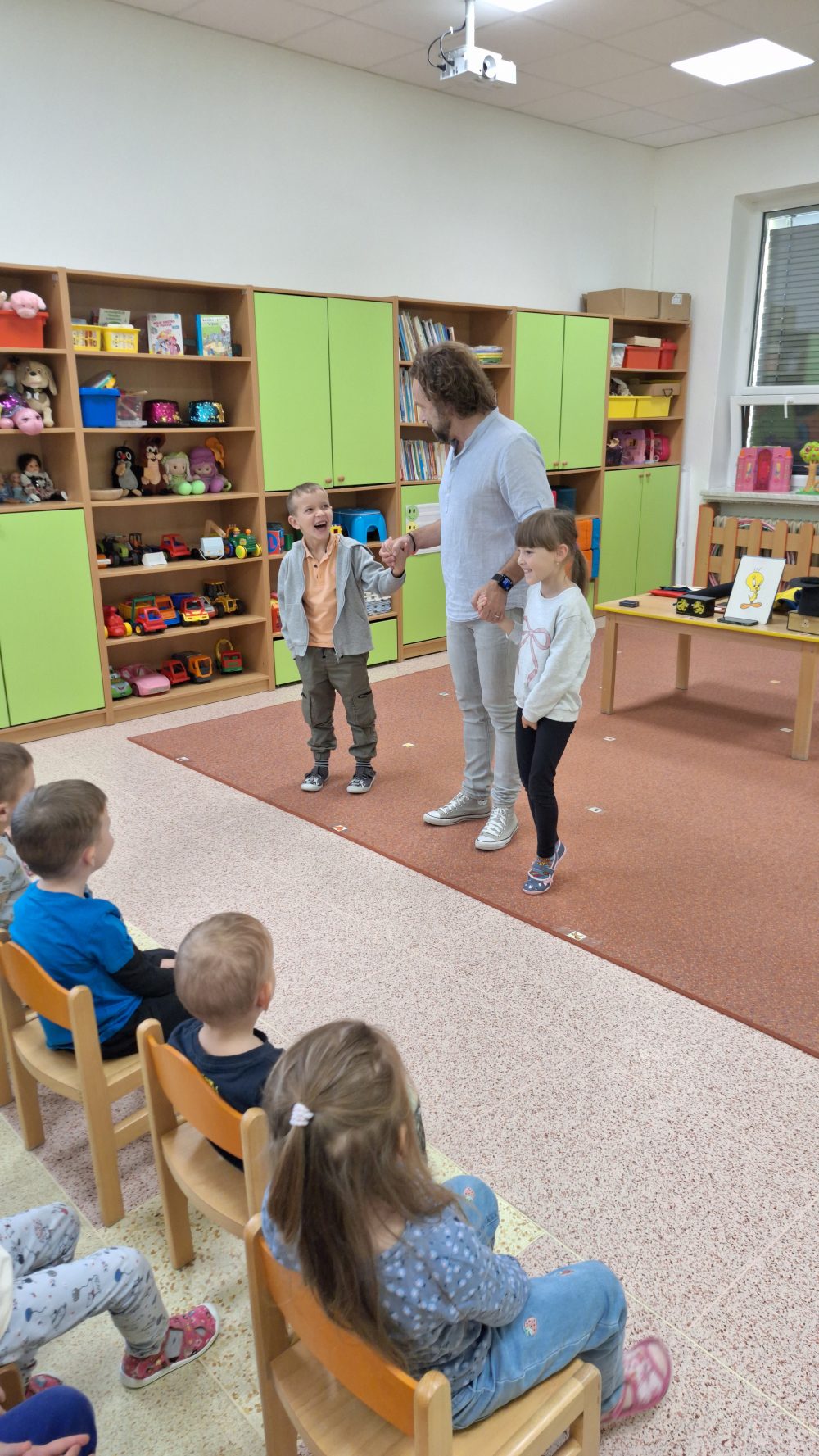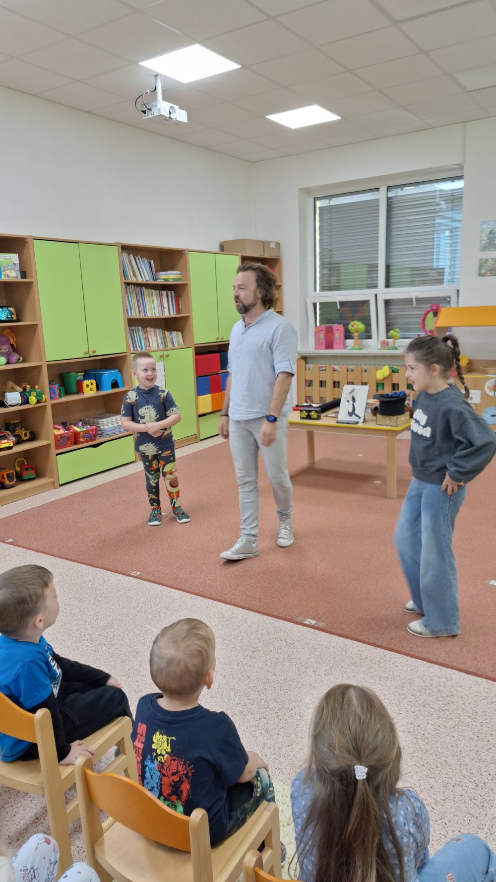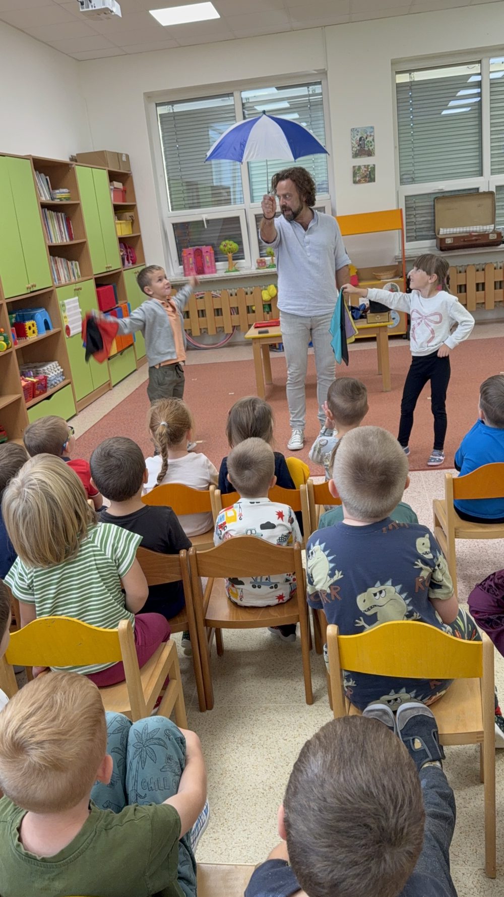 V pátek zavítal do naší školky kouzelník a herec, pan Tomáš Šulaj. Svým programem pobavil nejen třídu Sluníček a Motýlků, ale i prvňáčky. Do svých kouzel a zaklínadel zapojil také naše děti a na závěr je naučil trik s kouzelnickou hůlkou.