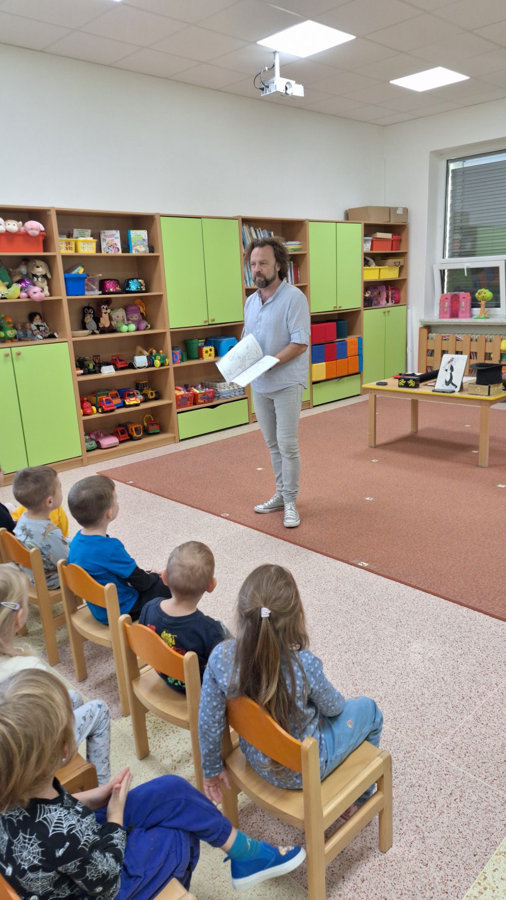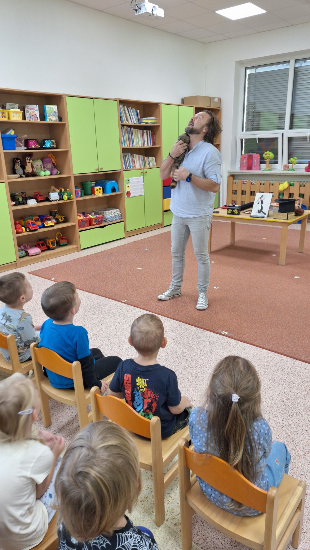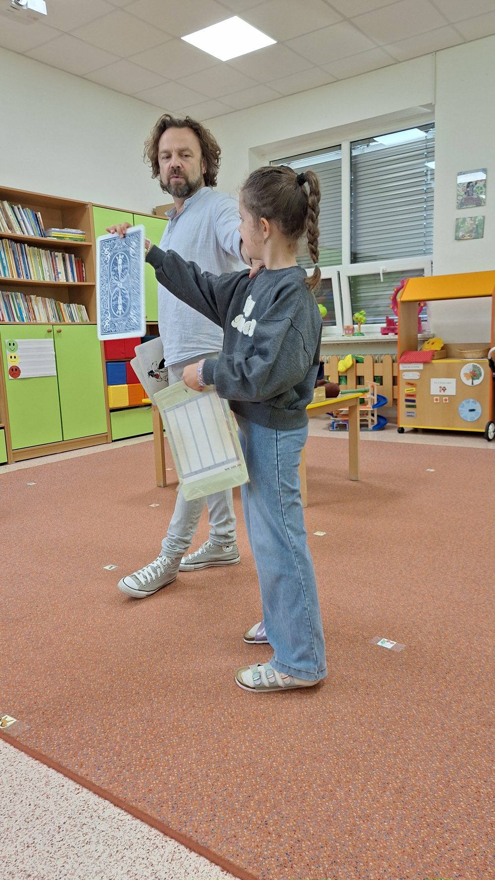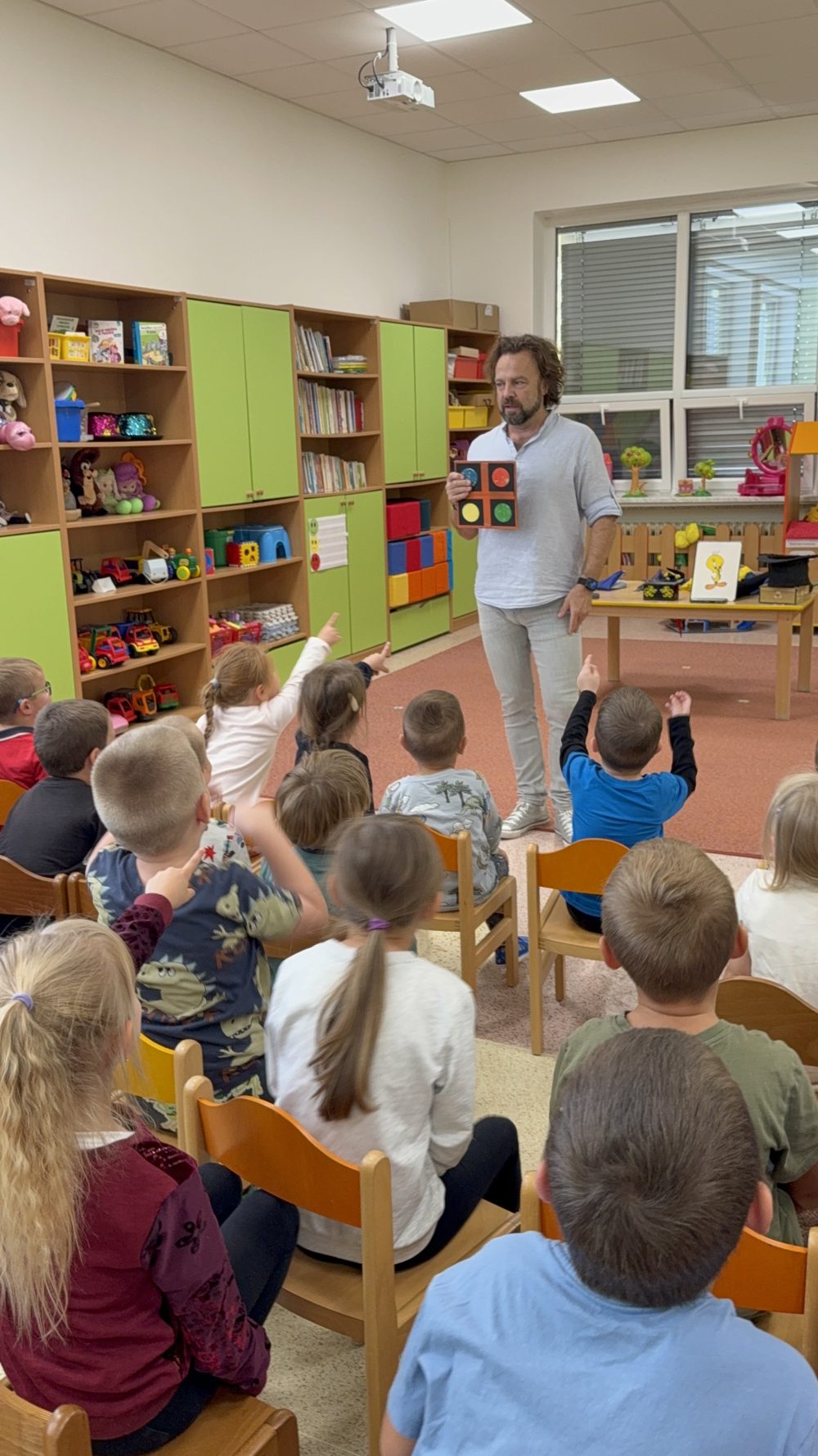 V pátek zavítal do naší školky kouzelník a herec, pan Tomáš Šulaj. Svým programem pobavil nejen třídu Sluníček a Motýlků, ale i prvňáčky. Do svých kouzel a zaklínadel zapojil také naše děti a na závěr je naučil trik s kouzelnickou hůlkou.