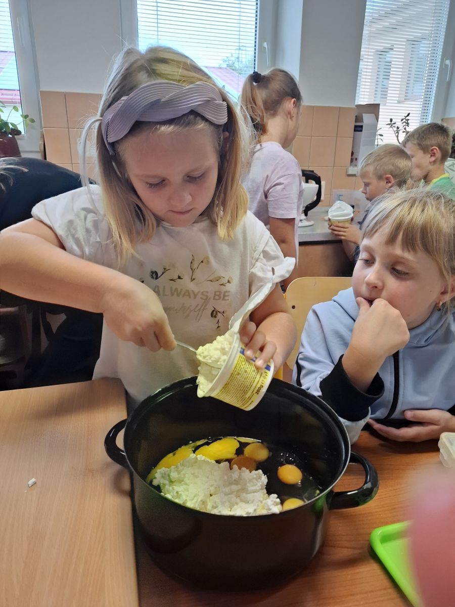Při prvním setkání v kroužku vaření jsme s druháčky připravili palačinky plné bílkovin a vlákniny. Letos se zaměříme na přípravu zajímavých a jednoduchých pokrmů. Ukážeme si, jak lze použít zdravé potraviny a upravit je tak, aby bylo jídlo chutné.